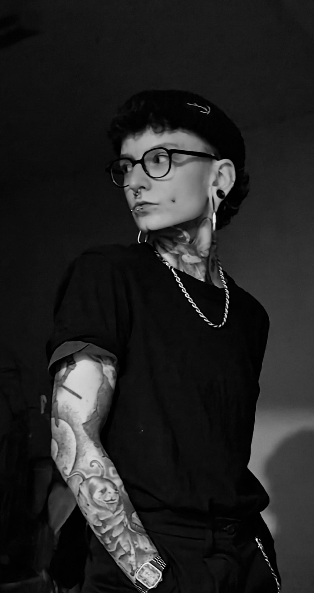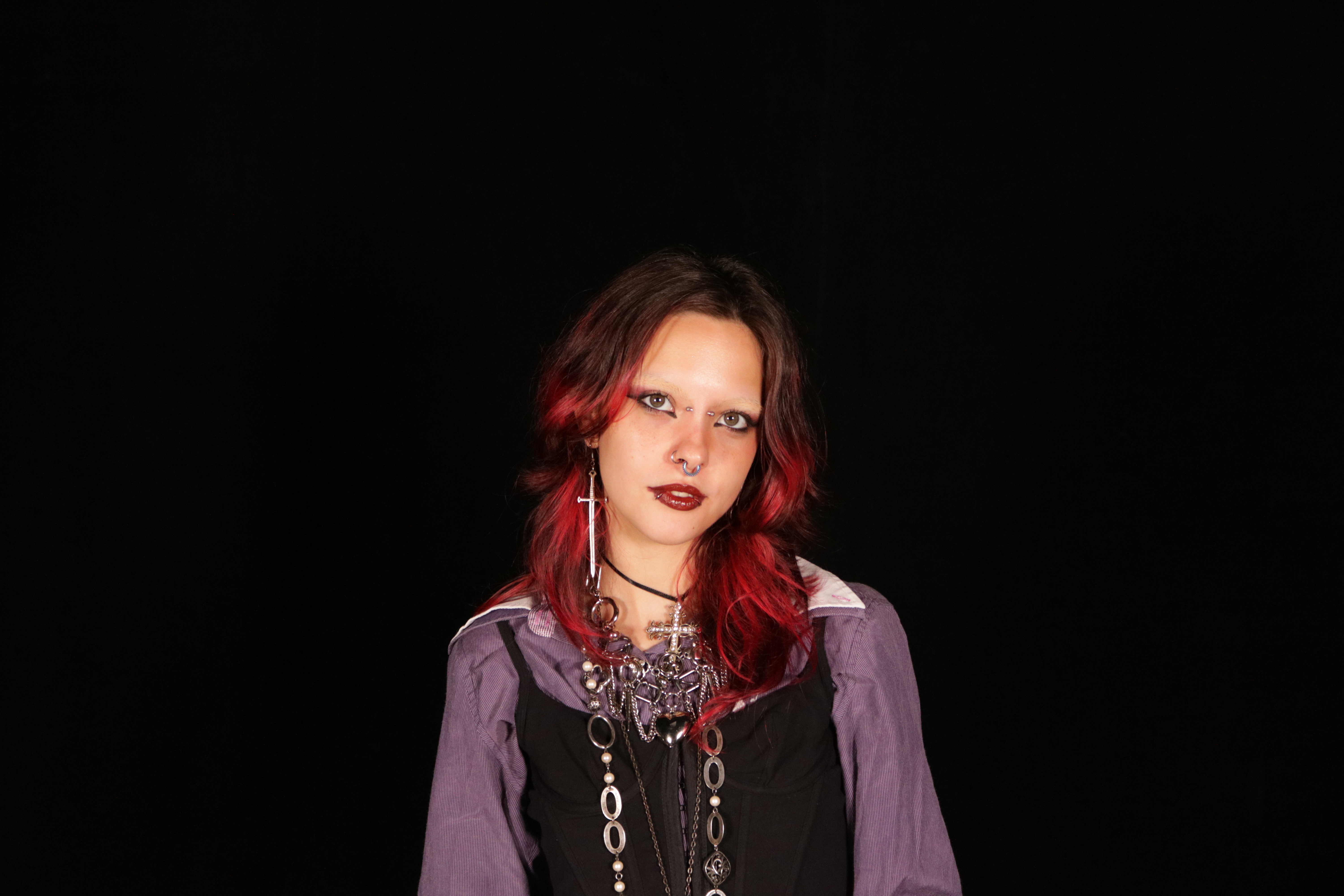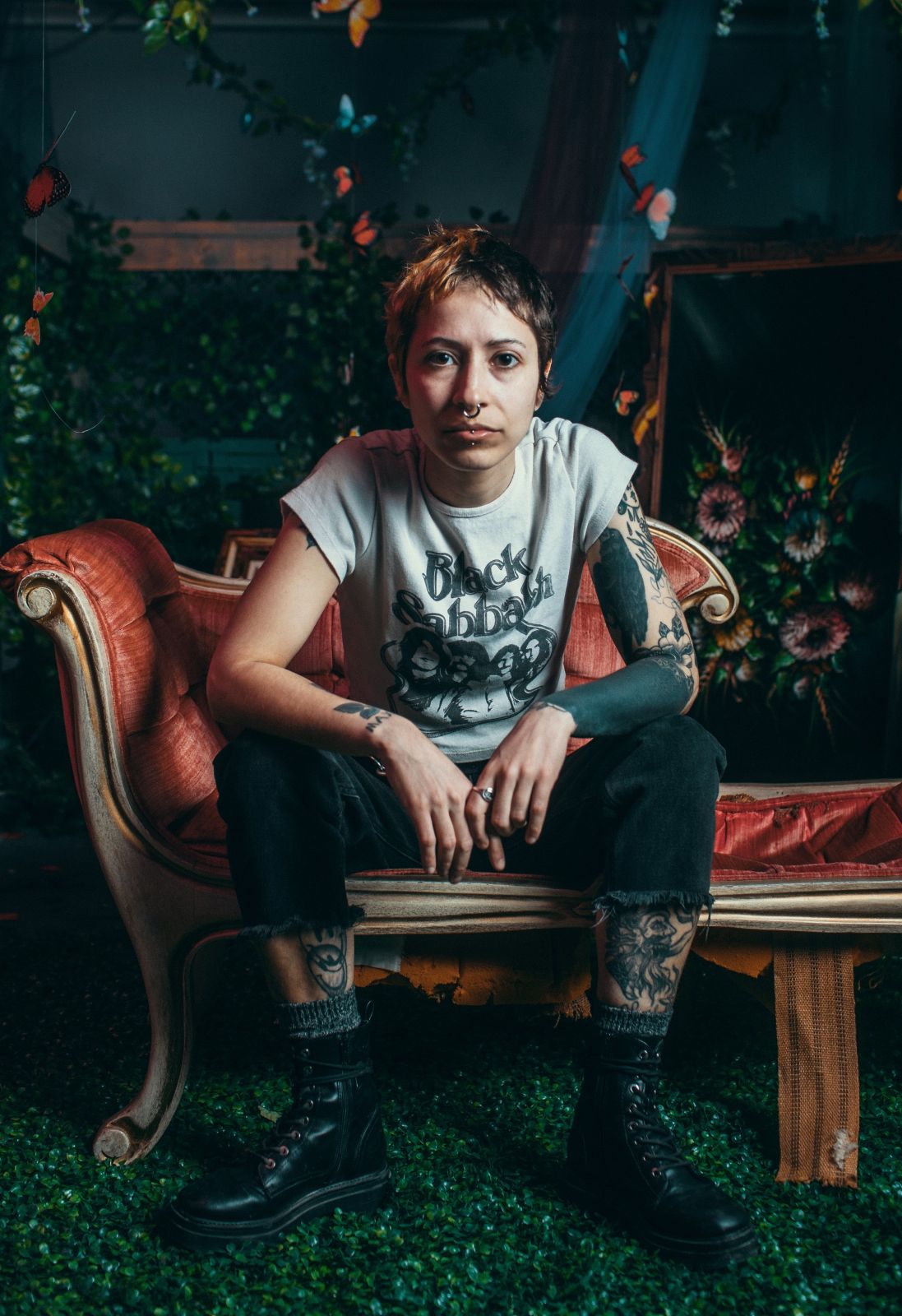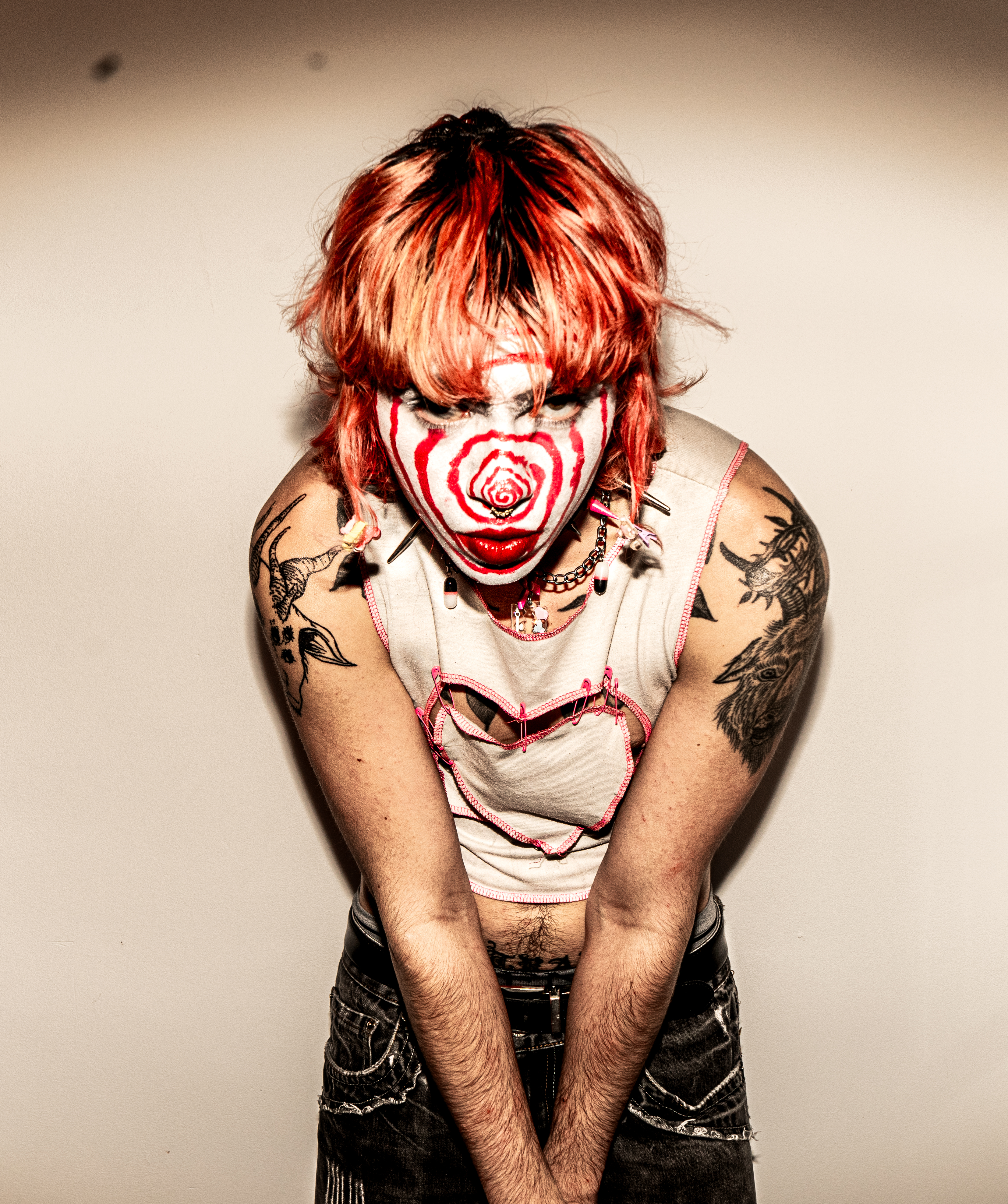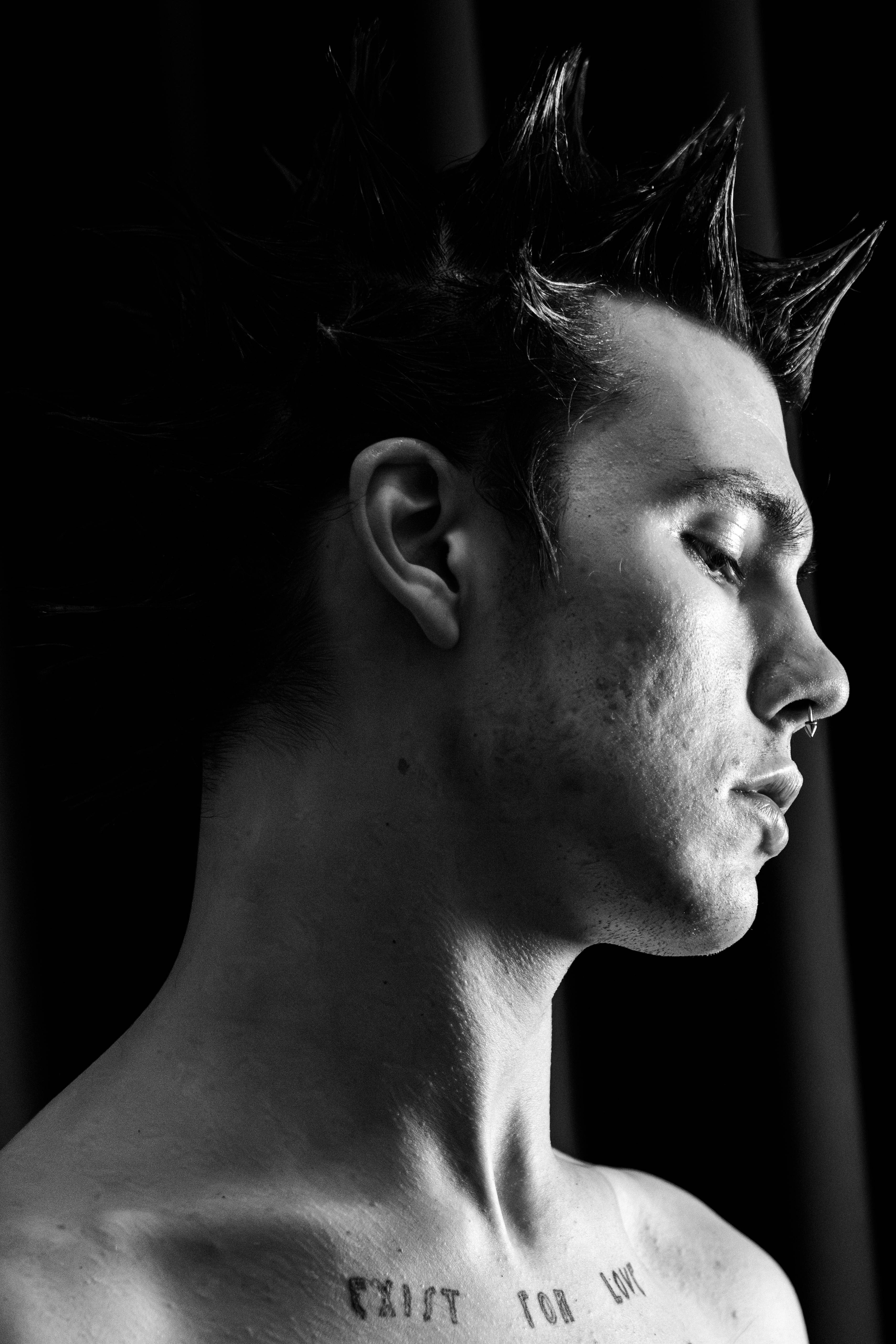 MERCY VIGIL is a nonbinary mixed media artist and model based in London with specialisations in photography, painting, embroidery, and SFX cosmetic application. They draw inspiration from their love of fashion and the exploration of showing the human condition and bodies in all its forms, unafraid to be themselves. They are heavily into the body modification/piercing subculture as it helps them express their gender identity.
