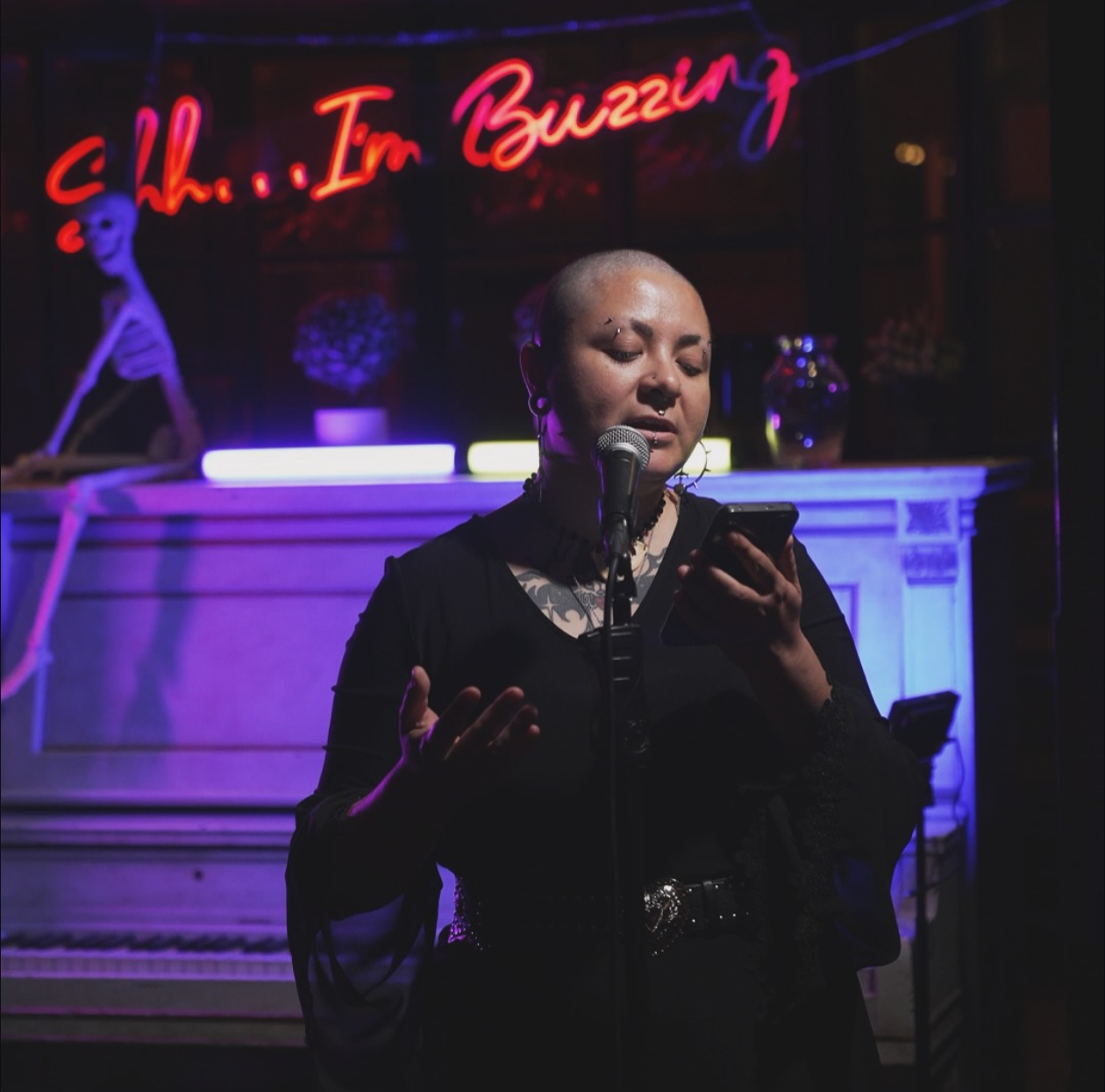 BIZ has been writing poetry since they were a kid to make sense of the world around them. More and more they’re using poetry to break down (and mildly mock) the status quo and where they might fit within it. Over the past six months, they’ve started to perform their work more regularly, and have recently won the Manchester Heat of the Mind Over Matter Slammer.