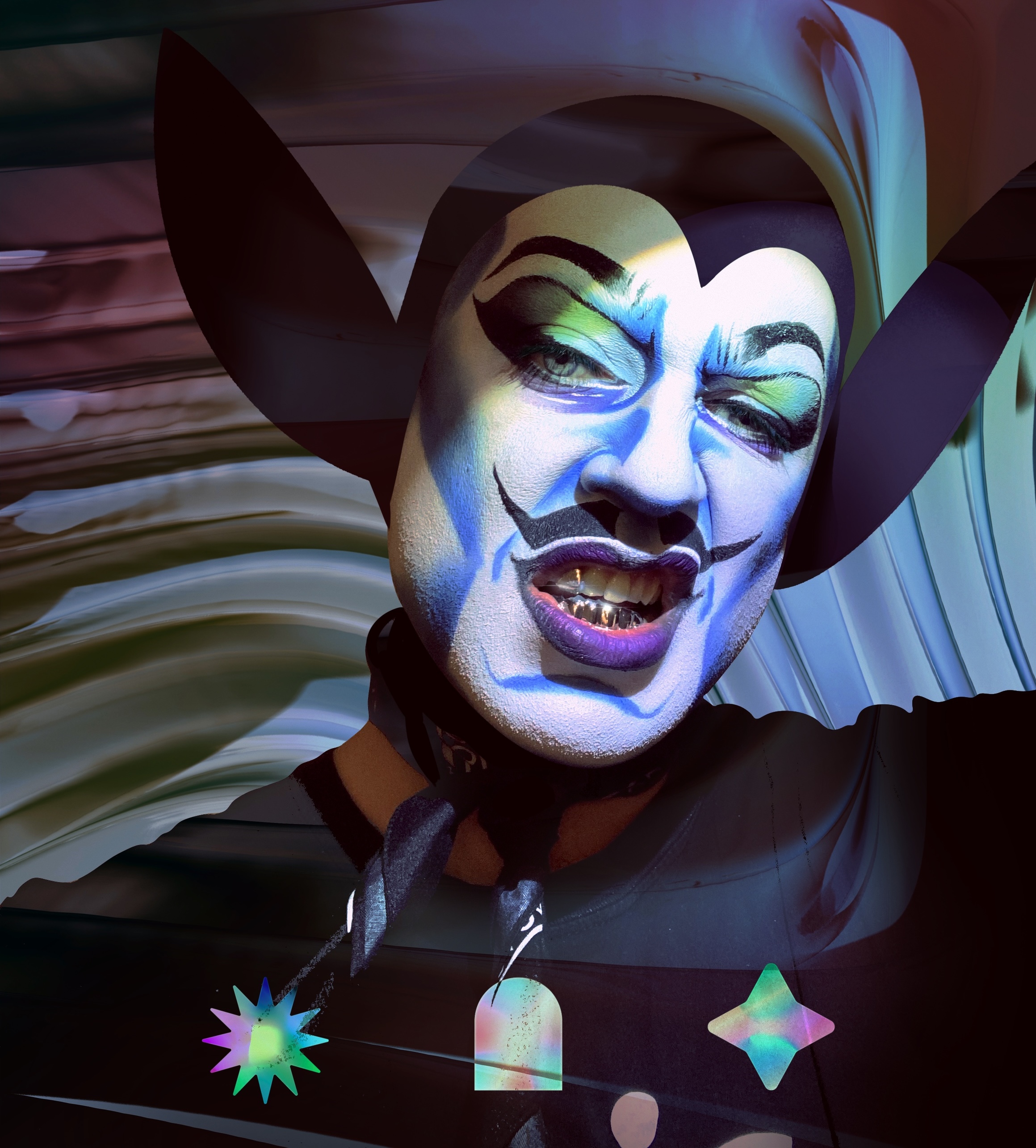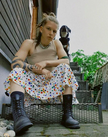 KHAOS R. BLAKK is a multidisciplinary neurodivergent creative with a focus in visual arts and fashion styling. Living in London for 10 years, they came from Portugal to live freely as a Queer Alt person. They dream of a society rid of capitalism and patriarchy, and their persona is poured out into their art and craft. IG:art.of.the.miscreants.