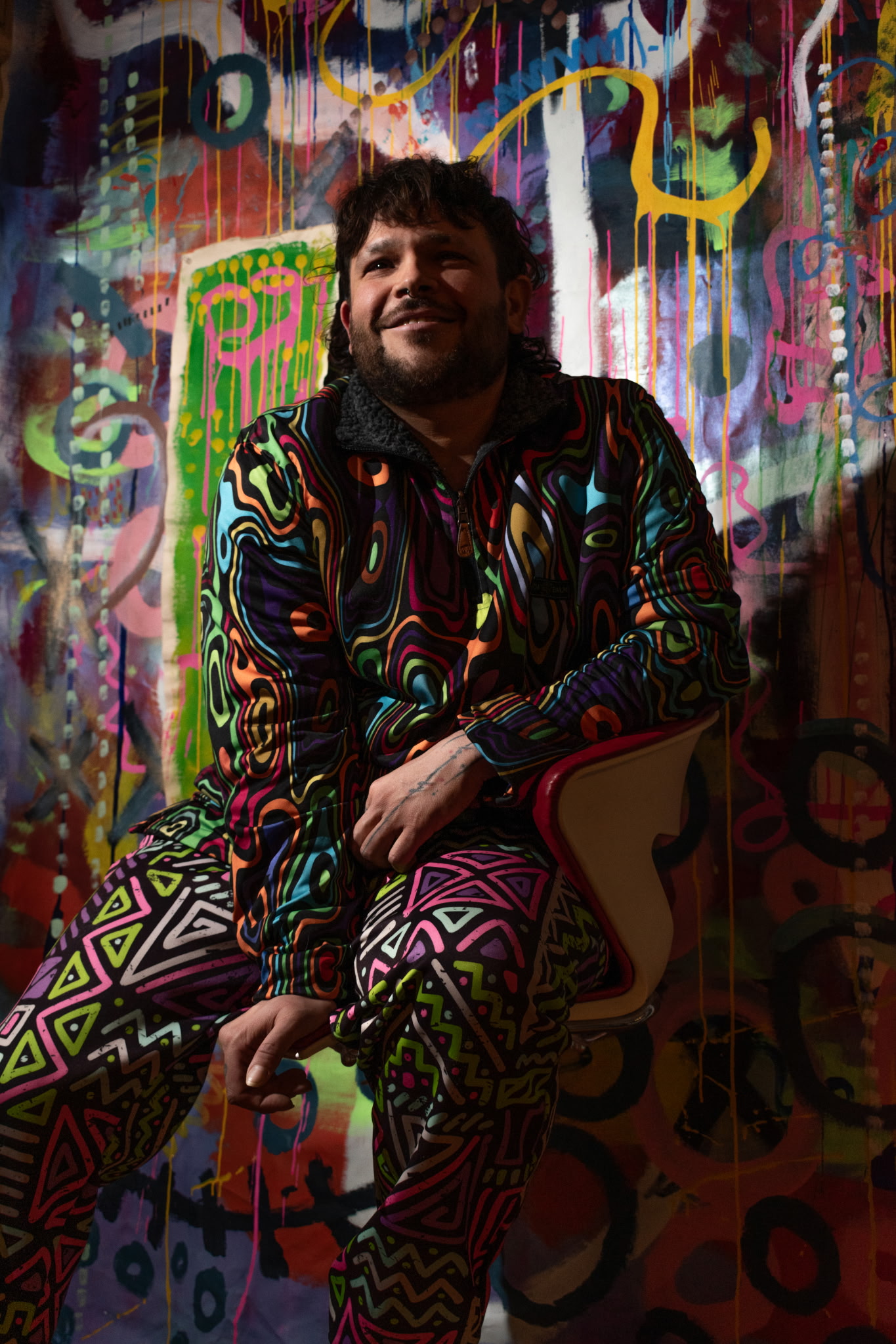 ZEENOMORPH is a non-binary mixed media artist from the UK whose work focuses on packing a punch. Visually striking, they are known for their use of textiles and stencils, blending intense energy with extreme precision to tell stories of identity, human nature and sex. Their inspiration comes from the rise in purity culture, using their art as an outlet to express their desire for a more hedonistic world. Check their art out at zeenomorph_art on insta.